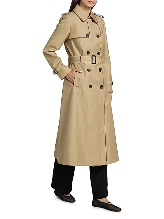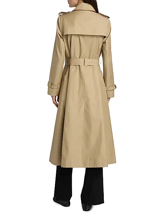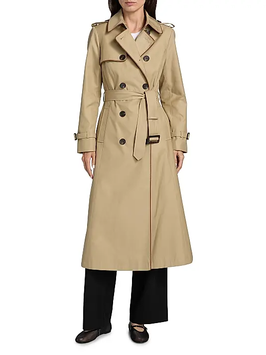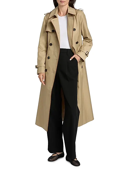 ONLY AT SAKS. This Mercer Collective trench coat features contrast faux leather piping for an elevated finish. Classic elements, including shoulder epaulets, a storm flap, and a belted waist, lend refined detail to this double-breasted silhouette.