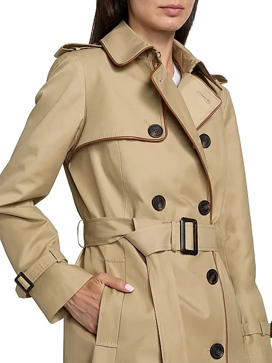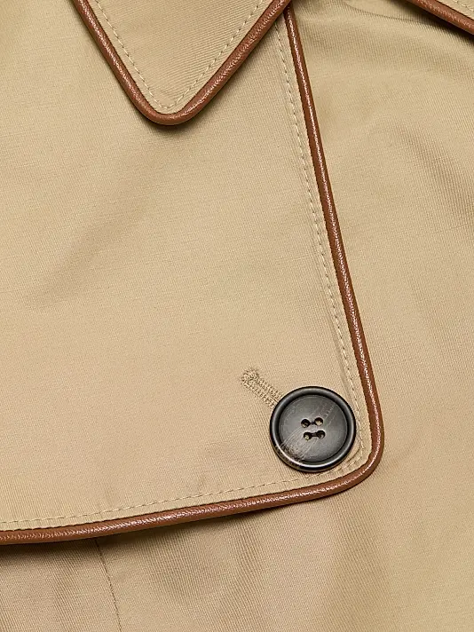 FAUX LEATHER TRIM TRENCH COAT | Faux Leather Trim Trench Coat