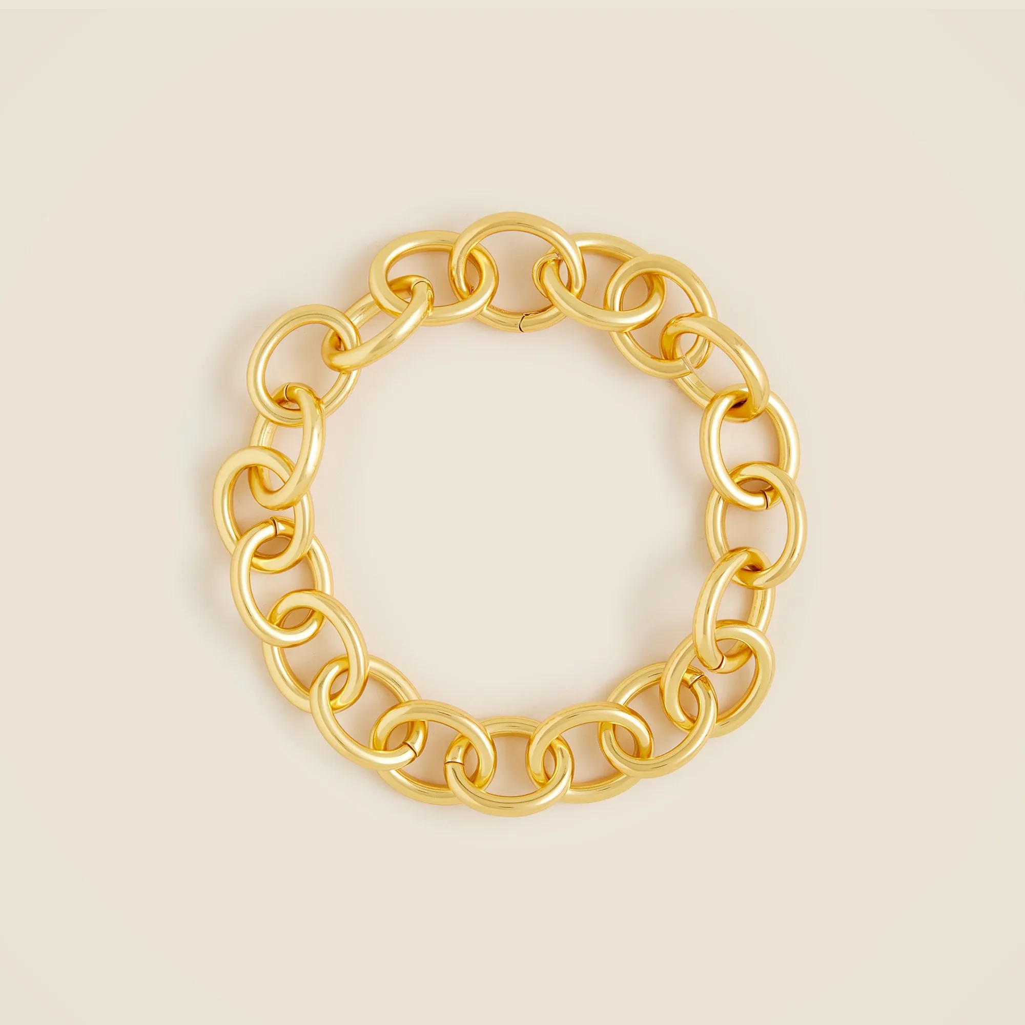 slightly ovrersized chainlink necklace. Feel-good fact: This style was made using eco-friendly recycled-brass casting and zinc. Want to keep your jewelry looking like new? We recommend removing it before showering or exercise and putting it on after applying hair products or perfume. To clean your pieces, polish them with a soft, dry cloth—and when not wearing, store them in a pouch or jewelry case.