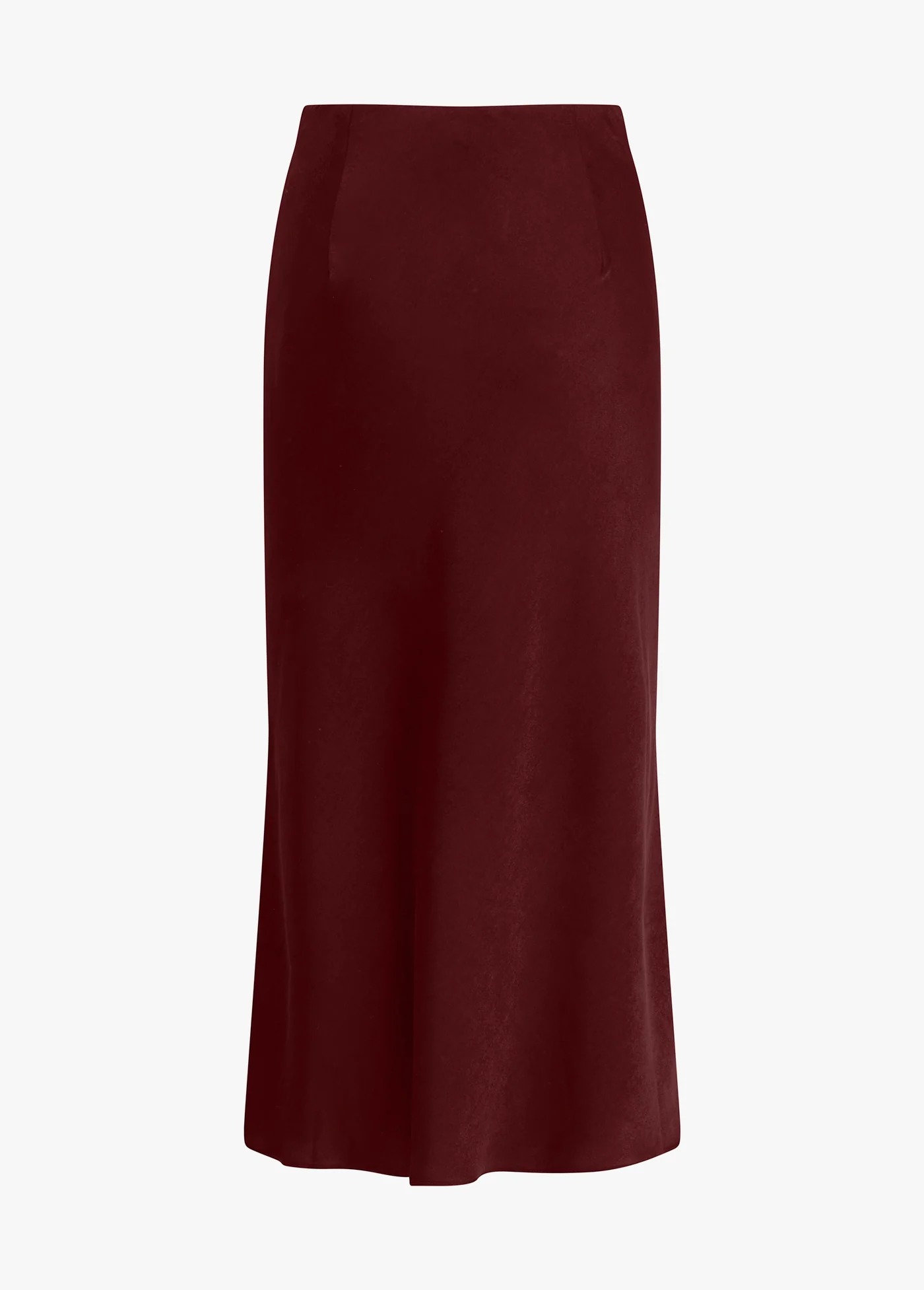 For special occasions. Any occasion, actually. The bias-cut Favorite Skirt in Vino has a high, pull-on waist and a billowy fit that hugs in all the right places. Measuring 34.5" from waistband to hem, it's cut from a soft viscose blend with a delicate feel--and it's super easy to style up or down. (It looks especially effortless with The Amelia Top or a classic tee.)