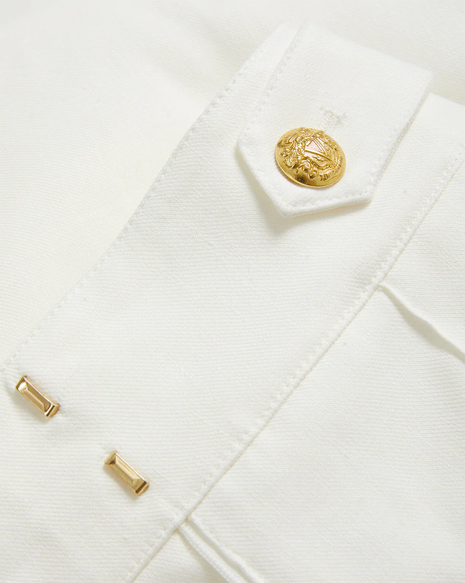 Part of our core collection, the Runo short is crafted from an Italian stretch-linen blend. This high-rise, relaxed piece also features front pleats and decorative crest buttons at the waistline. Wear with its coordinating jacket for a summer-suiting moment no one will forget.