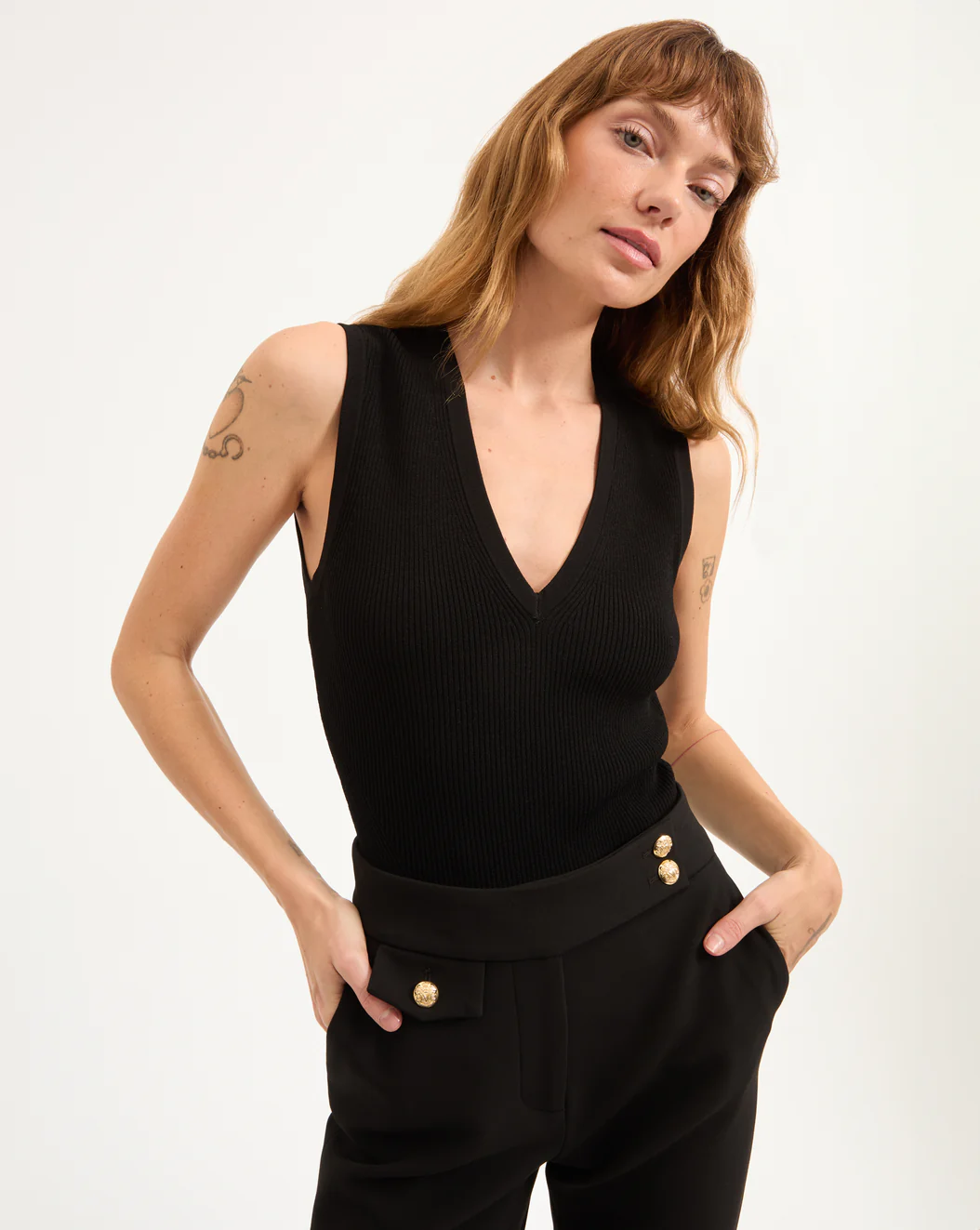 The Sid is the go-to top every woman needs, perfect on its own or as a layering essential. The lightweight shell is made from stretch viscose-knit and features an allover ribbed design. Wear with anything and everything—we especially love it with a leather skirt and a jacket for the perfect desk-to-drinks look.